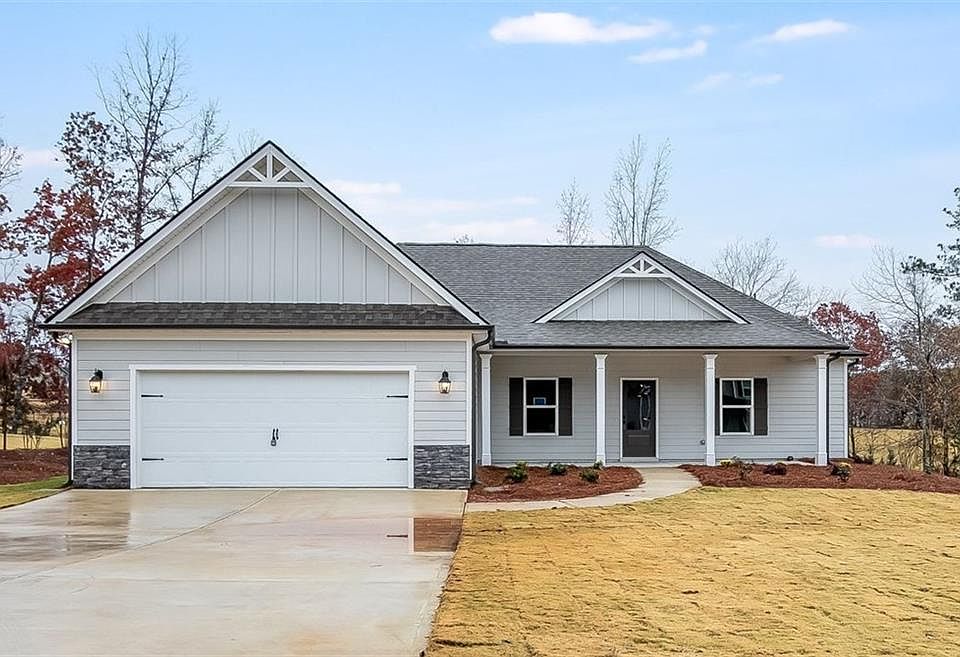 The McGregor on lot 92 features include a curved open kitchen with an 8-foot granite island, a large walk-in pantry, a huge mud room / laundry room and a 4th bedroom / flex room. Come take a look and step into the charm of Craftsman-style living with KMC Homes. All KMC Homes newly constructed homes offer a blend of comfort and elegance with thoughtful details throughout. These homes feature spacious granite islands and countertops in the kitchen and baths, along with wood cabinets boasting soft-close hinges. Stainless-steel appliances, including a gas stove, make cooking a breeze. Enjoy durable LVP flooring in wet areas and tiled floors and shower in the master bathroom. Cozy carpeted bedrooms provide relaxation, while a gas fireplace with stone features adds warmth and character. The master suite boasts trey ceilings, a fan, double sink vanity, tiled shower, separate garden tub, and large walk-in closets for ample storage. Entertain in style with dining areas enhanced by beautiful wainscoting and unwind on the covered front porch or the covered rear patio. Plus, enjoy the convenience of included gutters, window screens and security lights. Our homes also come with a termite bond and an 8-year home warranty for peace of mind. Located in the The Enclave at St Andrews community, amenities include sidewalks, streetlights, high-speed fiber internet, underground utilities, natural gas, county water and sewer, all for a low HOA fee of $250 per year. Discover these charming homes with no appointment necessary while under construction and enjoy the benefits of excellent schools and a peaceful location in Winston, a part Douglas County..