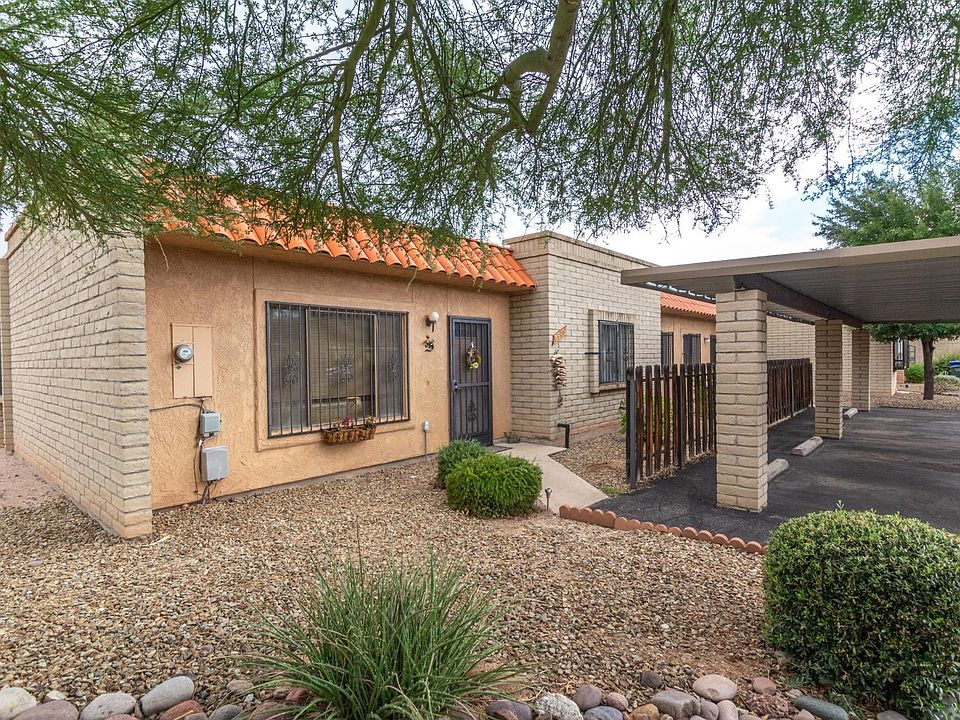 Beautiful single-story townhome right next to the community pool, spa, and guest parking. Home features wood-look tile flooring, plush carpets in the nicely sized bedrooms, custom paint scheme and large family room. Galley kitchen hosts tile counters, white appliances, and lots of warm cabinetry for ample storage. Peaceful master includes private ensuite. Private patio space and easy maintenance yard. Schedule a showing for this charming east side townhome today!
