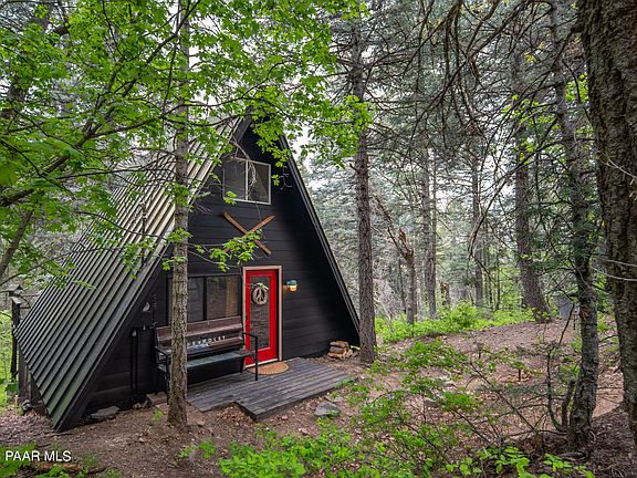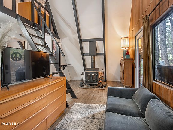 Welcome to your cozy A-Frame cabin nestled in the heart of Mountain Pine Acres! This charming remodeled cabin is perfect for those who want to escape the hustle and bustle of city life and enjoy the peace and tranquility of nature. With over 1.48 acres of pine-filled land, you will have plenty of room outside to explore.Step inside and you will find yourself in a warm and inviting space that is perfect for relaxing after a day of hiking. The cabin features a wood-burning stove that will keep you warm and toasty on chilly nights, while the back open deck is the perfect spot to enjoy your morning coffee. The new remodel includes new interior and exterior paint, new light fixtures and new vinyl flooring throughout. The beautiful new kitchen, outfitted with new refrigerator and microwave,