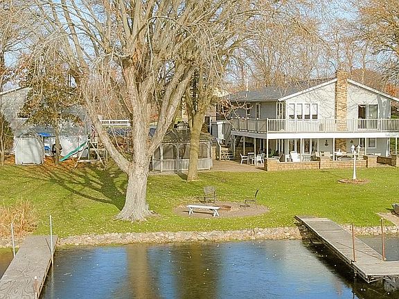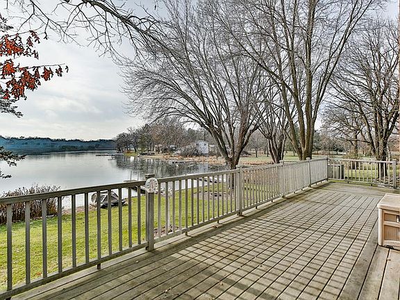 Welcome to the Lake! Highly sought after Blue Lake Property on 3/4 acres! close to the cities! Level from house to the lake! Walkout Rambler w/main flr laundry, updated ctrs, 2+ bedroom(Current owners removed doors on 3rd br to make a formal dining rm), 3bath. Huge maintenance free deck with amazing views of the lake. Large patio, scrned in gazebo and firepit, great for entertaining! 2 docks shed, a detached garage AND a pole barn!