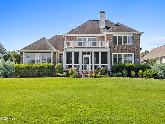 Welcome home to 8940 Woodcreek Circle—a charming four-bedroom, three-and-a-half-bath brick home overlooking the 14th green of Porters Neck Country Club with stunning views of Lake Nona. Upon entering the double doors your eyes will be drawn to the expansive water and golf views as you settle into the two-story living room complete with built-ins around the fireplace. Moving around the corner leads you to a butler's pantry and then into the gourmet chef's kitchen complete with top-of-the-line appliances including the centerpiece Wolf 6-burner gas range, double ovens with convection, Sub-Zero refrigerator and Miele dishwasher anchored by an oversized island with granite tops. The kitchen and additional sitting area both have spectacular golf course views. Step out onto your private screened porch to unwind after a long day and enjoy the sunset. The first-level master suite is complete with a walk-in closet, walk-in shower, and jetted tub. Finishing off the first level is a formal dining room, powder room, and expansive laundry room. Upstairs boasts three bedrooms and two bathrooms and a large walk-in attic space for easy storage. The fourth bedroom with en suite bath also has a private balcony with arguably the best vantage point for water views.