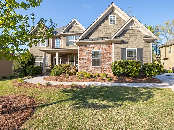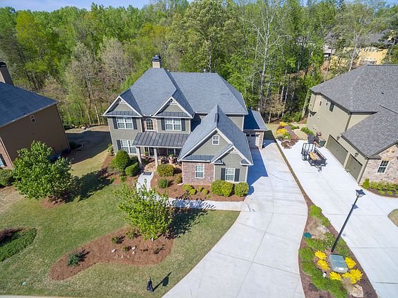 Introducing this Opulent Craftsman style home with stone accents just walking distance to Lake Lanier. Notable for its array of Upgrades throughout & expansive backyard with invisible fence, large red Deck and lower patio, four car garage, new roof, hot water heater, dishwasher, nest doorbell, wifi thermostats, light fixtures, landscaping. A dramatic two story entrance foyer sets the tone for the entire residence distinguished by authentically detailed crown molding, arched doorways, rich hardwood flooring throughout main level, Spectacular Oversized Chef's Kitchenwith stunning stonework design overarching gas range, center island & Breakfast bar, two fireplaces in both family room and keeping room, Elaborate Coffered Ceilings. Spacious bedroom and full bathroom on the main level for your guests. Upstairs boasts three large bedroom areas, another full bathroom with double vanity, Media room. Gigantic master suite with vaulted coffered ceiling, gorgeous shower and jetted tub, double vanity mirror in the master bath. Master bedroom closet is the size of a bedroom equipped with ceiling fans. Full basement down stairs ready for you to finish to your tastes.