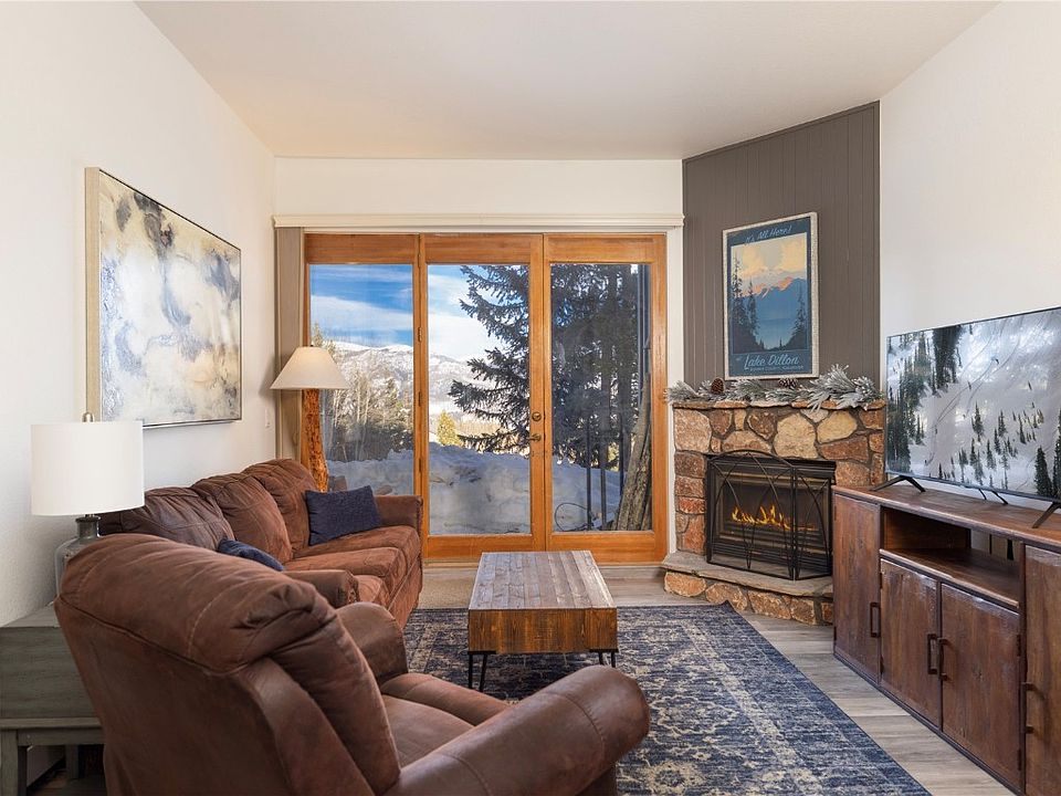 DESIRABLE LOAN OPTIONS NOW AVAILABLE at Buffalo Ridge/Village! You don't want to miss this tastefully remodeled and furnished 1 bed 1 bath condo with extraordinarily high ceilings and a walk-out private patio with a VIEW! Perfectly situated at the end of this complex's only hallway with no units on the opposite side for added peace and privacy! Whether you're an adrenaline junkie or just looking to relax and soak in the beauty of nature, Summit has something for everyone. With year-round activities and a vibrant mountain community, every season offers a new way to experience the great outdoors. Additionally, this condo is walkable to several trails & is located across from a stop for the FREE Summit Stage bus line that connects to several major ski mountains and towns. To top things off the entire complex is in the final stages of a complete exterior and interior transformation including a full amenity overhaul. This building offers an indoor saltwater pool & hot tub, fitness room with brand new equipment, community outdoor deck, dry sauna, elevator, & a large lounge area! The adjacent building provides access to a 2nd indoor saltwater pool & hot tub, racquetball court, game room, & more! Thanks to the commitment of the newly appointed skilled Board of Directors & property managers this place will soon look and feel brand new. The SHORT TERM RENTAL license wait-list for the 'Lower Blue Basin' of Unincorporated Summit County has started! Rent 30+ days while you are in line. Reach out for details! Don’t miss the chance to take advantage of the upcoming benefits of this soon-to be completely modernized complex!