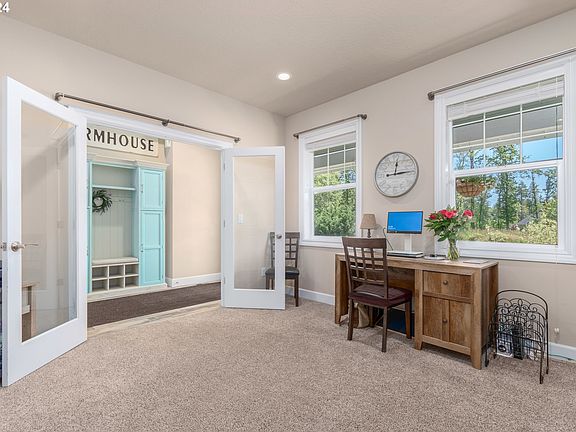 Oregon Country Estate! This custom built property boasts all the amenities you've been looking for & plenty of privacy, manageable acreage and design touches that are perfect for rural living. Entry area & private office welcome you; notice the tile flooring throughout! Gourmet kitchen w/ prep stations, pantry, wine chiller, bar seating and eat-in dining area. Main-level bedrooms & primary suite w/ doorway to hot tub & back patio. Spacious walk-in's large enough for him and her's, private water closet, dual vanity & glamours lighting. Bonus room with full bath upstairs! 3-car garage not large enough? Don't worry; you have a detached 2-bay shop, and 3rd bay for hay & feed which opens to your 2-stall Paddock. Goat barn, chicken mansion, & Hog wash! Property is equipped with an equine corral as well as being fenced and cross-fenced. This home has everything you're looking for, including amazing neighbors - too much to list - don't miss it!
