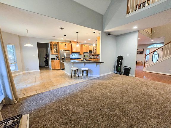 Flooring: A mix of carpet, tile, and wood flooring throughout.