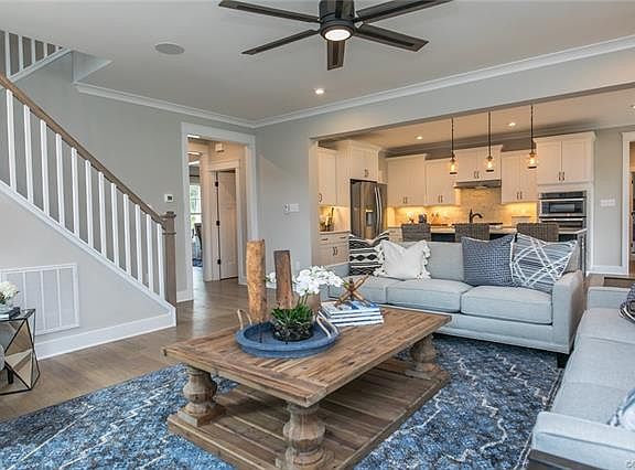 Eastwood Homes Roanoke plan. Walk into a large foyer with your formal dining room to one side and your office/study on the other side. When you enter the livining area, you will be amazed at the HUGE GRANITE KITCHEN ISLAND, perfect for entertaining and family gatherings! In your chef's kitchen, you have a large walk in pantry, 42" staggered kitchen cabinets, stainless steel appliances . 1st floor guest suite with full bath. The master bedroom features a HIS and HERS WALK IN CLOSETS. Walk up the OAK STAINED STAIRS to find a LOFT area perfect for TV watching and game night! Outdoor living will be easy with your covered porch! 9' ceiling downstairs and upstairs!