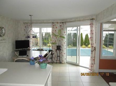 Mint condition ranch w/spacious great room.Bright wall of windows&hardwood flooring-overlooked by den/loft/office w/custom library shelving.Spacious kitchen w/ceramic flooring&breakfast room overlooks professionally landscaped yard w/newer inground pool.Shadetree Retractable Awning system over patio.3 main floor beds w/hardwood floors including huge master suite Large bed/rec room in lower level.