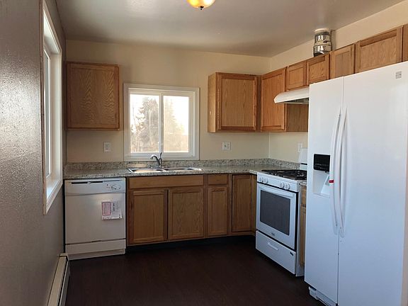 Full remodel - New paint, flooring and bathrooms! 3 bedrooms and one full bath on the main floor. Upstairs has spacious living room with wood burning fireplace and south facing windows, kitchen with gas stove and great mountain views, bathroom with stand up shower and laundry room. Comes with carport and outdoor storage closet. Tenant pays gas and electric only. Dog on approval. No smoking. Schools are Chinook Elementary, Mears Middle School and Dimond High. Rent is $1,600 + Gas and Electric. Owner pays Water/Sewer and Trash. A qualified tenant will have a minimum gross monthly income of at least 3 times the rent, good credit or credit we can be comfortable with and good past rental references. Call for more information and to schedule a showing! Justine Sanders at 907-762-3132 (office) 907-351-3020 (cell) or Diane Byker, Property Manager and Licensee at Jack White Real Estate at 907-762-3133 (office) 907-227-4144 (cell). Year lease minimum. No smoking. Dog on approval. Tenant pays gas and electric.