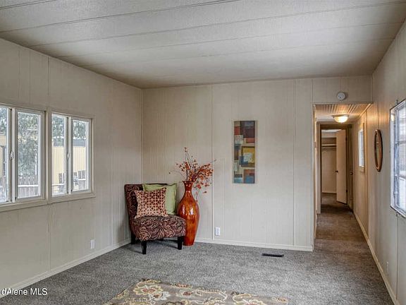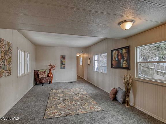 Check out this nice manufactured home in a great Rathdrum park. This 2 bed/1 bath home is clean and move-in ready. New stainless steel appliances in the large kitchen. Furnace is newer and has a tank-less water heater. Quiet location surrounded by beautiful trees. Storage shed and nice low maintenance yard. Check this out, great for a starter home or for someone downsizing. Not a part of the park, this manufactured home comes with the land. Owner does not pay fees.