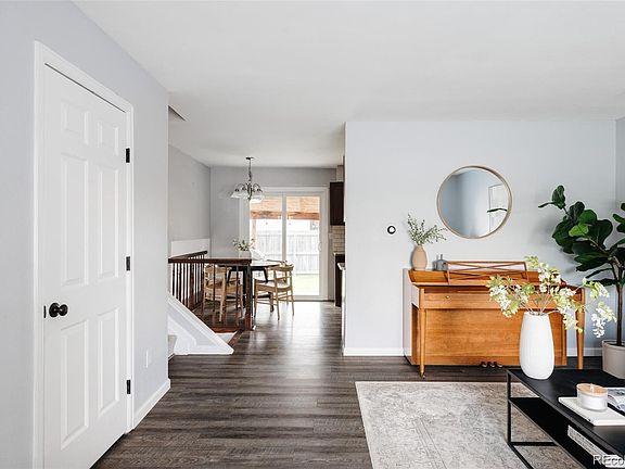 Sheer luminosity beams throughout this welcoming Park West home. A lush front lawn and a brick exterior greets residents, inviting entry inward to a gracefully flowing layout flanked by fresh wall color. Vast windows draw natural light into a spacious living area offering plenty of room for both relaxing and entertaining. New luxury vinyl plank flooring meanders easily underfoot into a bright dining area and kitchen boasting a subway tile backsplash and abundant cabinetry. Open a new sliding patio door to reveal a covered patio overlooking a private backyard. A staircase descends to a lower-level living area grounded by a cozy fireplace. Four sizable bedrooms include a primary suite complemented by a serene bath w/ a double vanity. Downstairs, a secondary bath features updated flooring and a new vanity. A laundry area with a washer and dryer set is an added amenity. Residents enjoy an ideal location w/ easy access to the mountains, parks, lakes, and trails plus retail and restaurants.