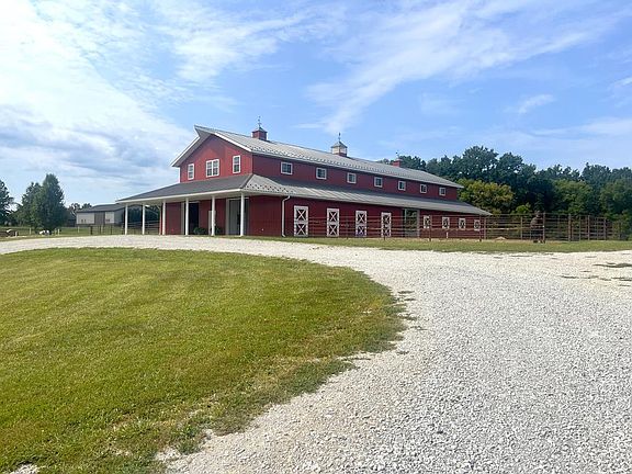 Custom Barndominium Estate on 36 Acres with Pond, Horse Facilities & Treehouse. Discover the perfect blend of luxury living and equestrian amenities. This one-of-a-kind barndominium sits on 36 sprawling acres, complete with a pond, a dream treehouse, and premier horse facilities. Pull up the driveway to a picturesque lane to arrive at your custom barndominium. Inside, soaring wood ceilings, a chef's kitchen—complete with quartz counters—with open concept living. Two cozy bedrooms, office, laundry and bath are just down the hall. Step outside to the equestrian compound: eight premier stalls open onto paddock runs, inside wash bay area, and a 60x60 indoor arena that lets you ride year-round. A water line from the pond feeds the concrete trough and there are two automatic waterers.