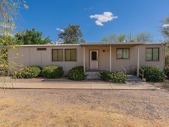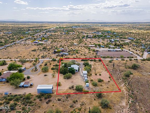 Discover the potential in this 3 bed 2 bath double wide manufactured home sitting on almost 1.5 acres of desert with mature trees and natural vegetation. Inside find a large living room with spacious kitchen, island, wet bar and breakfast nook. Outside enjoy the wildlife under the large covered patio while listening to the sound of the built in water feature. This home offers convenient paved road access and a private water company. Bring your toys as there is abundant room for RV parking and the freedom of NO HOA. A workshop with electric and 3 additional storage sheds provide plenty of space for all your tools. This is more than a home—it's a lifestyle waiting for you.