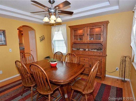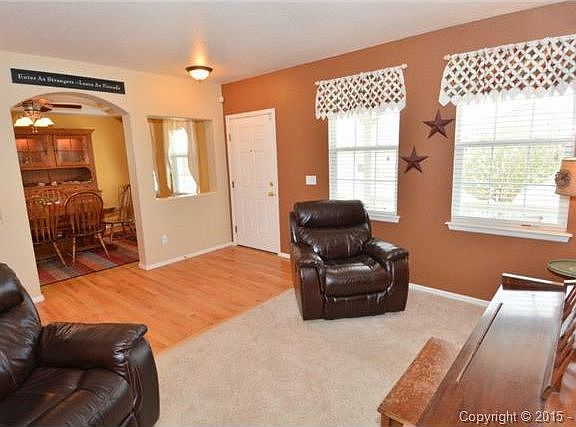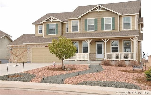 Country living with easy access to city conveniences and in neighborhood recreation centers that include indoor and outdoor swimming pools, fitness equipment and classes and much more. Lovely home on .25 acre lot near the golf course, close to the District 49 (Falcon) elementary, middle and high school, and only a couple miles from Wal-Mart, Safeway, several restaurants, and your other basic shopping needs. 1st Floor: 1) Formal living room. 2) Formal dining room accented with a pan ceiling. 3) Eat-in kitchen with stainless appliances including a gas range and double ovens, granite countertops and backsplash for the range, a custom sink, lots of cabinets, a pantry, and dimmable LED recessed lighting. 3) Family room with gas log fire place. 4) 1/2 Bathroom. 5) Office/Mancave. 6) 1st floor has access to the front porch, garage and back deck. 2nd Floor: 1) Huge master bedroom with custom ceiling fan with a stained glass light fixture and a view of Pikes Peak. 2) Big 5-piece master bath with walk-in shower, large jetted tub, his-and-hers vanities and a private toilet area. 3) Gigantic walk-in closet off the bathroom that includes over 30 feet of clothes rods and built in shelves. 4) Large private loft area off the stairs that is ready to be customized to suit your needs. 5) Bedroom with private full bathroom. 6) Two additional bedrooms with large closets. 7) Full bathroom with double vanities. 8) Laundry room with gas and electric hookups for the dryer, large sink, cabinets and an overhead storage shelf that runs the length of the room. Basement: 1) Over 1400 sq feet in the unfinished walkout basement that is pre-plumbed for a bath and ready to be finished to meet your needs. Garage: 1) 4-Car garage (3-cars wide with a tandem) with keyless garage door entry and lots of cabinets and pegboard installed throughout. Updates since purchase in 2012: 1) Exterior of the house painted (2014) 2) Add a second keyless garage door opener (2014) 3) Custom xeriscaped the front yard with granite, LED-lit walkway, gorilla hair mulch, and decorative trees (2012/2013) 4) Central A/C (2012) 5) Install retractable sunshades on the front porch (2013) 6) Customized showers with adjustable flow and multi-setting message shower heads that can be handheld (2013) 7) Upgraded recessed lighting with dimmable LEDs (2014) 8) Fenced backyard with 3 custom gates to easily access yard from both sides of the house and sidewalk behind the yard. The gate on the north side of the house (next to the driveway) has a gate large enough to allow trailers, RVs and/or campers to be parked in the backyard. (2014) 9) Wood blinds throughout the house and a custom wood blind in the office (2012) 10) Updated all of the interior paint to neutral colors (2012) 11) Air ducts throughout the house professionally cleaned (2014) 12) Custom dropdown spice rack installed in kitchen pantry (2012) 13) Added an adjustable basketball goal that is anchored to withstand high winds and is equipped with a custom overhead light (2013) 14) Added cabinets, nearly indestructible worktable countertops, and peg board in the tandem portion of the garage (2013)