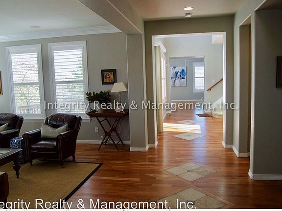 5 Bed/ 5.5 Bath, 4340 Sq Ft, 8945 Stonecrest Way, Highlands Ranch - Available June 1. Stunning 2-story home with unfinished walk-out basement in the coveted Highlands Ranch Golf Club overlooking 12th Fairway with panoramic mountain views from all 3 levels! This 5 bed/6 bath home offers endless amenities with over 4,300 sq ft of living space to gather family and friends! Open entryway with beautiful cherry hardwood floors with tile inlays, plantation shutters, and surround sound system inside and out. The formal living room featuring a gas fireplace with mantel, and french doors leading to an office (or 6th bedroom) with attached full bath. Enjoy the formal dining room featuring a coffered ceiling, dry bar with granite countertop, and wine rack. The great room with high ceilings, lots of windows, and a second gas fireplace leads into the eat in kitchen with granite counters, island, stainless appliances, and double ovens. The second floor offers a huge master suite with 3 sided fireplace, private deck, 5-piece master bathroom with jetted tub, and large walk-in closet. There are 4 additional ensuite bedrooms, and an upstairs living area or office space. Abundant outdoor living includes full deck with retractable awnings, large patio with fire pit off the walkout basement, secluded side deck off the formal dining room, and cozy front porch. A must see with luxurious touches throughout and a beautifully landscaped lot! Yard maintenance included. Walk to Golf Club, and enjoy access to all Highlands Ranch rec centers. Close to Target, Starbucks, "Central Park" with several restaurants, and Rock Bottom Brewery is coming soon. Easy access to C470, Lucent, Santa Fe, and Town Center! Small dog with $250 pet deposit/pet and $25.00/mo pet rent. Professionally managed by Integrity Realty & Management. To schedule a showing online, go to Integrityrm.net/rentals. Application Fee: $40 Security Deposit: $4,895 Lease Admin Fee: $200 *Information contained in this advertisement is deemed reliable but is not guaranteed. Tenant to verify all information before entering into lease agreement. No Cats Allowed (RLNE4020822)