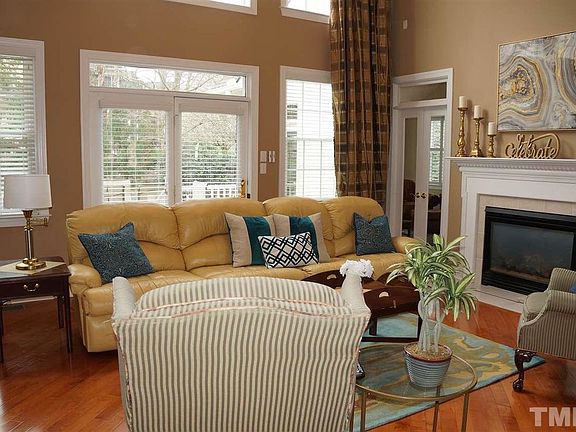 Immaculate home in prestigious Brier Creek. Fabulous open floor plan with great flow. Maple floors (installed diagonally for architect appeal!) Wonderful updates throughout include designer lighting & paint. Glazed maple cabinets in kitchen w/granite countertops. S/S appliances. Cooktop w/wall oven microwave combo. Island & canned lights Lovely moldings, elegant foyer & dining room! Soaring ceilings. Champagne Master Suite w/huge w/i closet & built ins.. Custom patio & deck! Irrigation system.