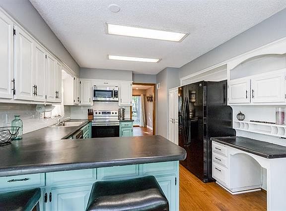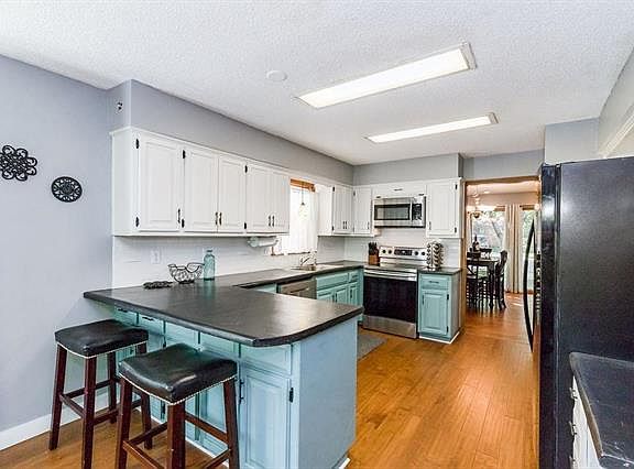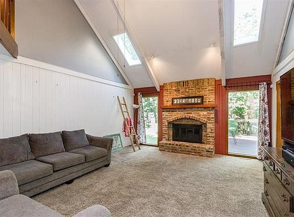 This house is ready for your family to call it home! Open & airy living room with vaulted ceilings with skylights and a brick fireplace. You can host holidays & dinner parties in the formal dining room, or casually dine in the eat-in kitchen. Spacious kitchen with breakfast bar seating, stylish white cabinetry, stainless steel oven & microwave, and a built-in desk. Master suite on main level features a full bath w/ closet, built-in dresser, and dual closets.