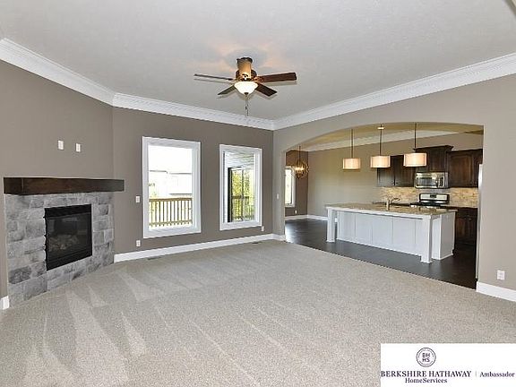Hildy Homes 6 bedroom ranch walkout in Stratford Park. Bennington Schools. 3 beds on Main floor. Open floor Plan. High ceilings, arched doorways & crown moldings. Drop Zone. Dream kitchen w/ loads of granite, lg island, full SS Apl pkg & walk in pantry. Lower level features 3 beds, bath! Lg rec room w/ wet bar & fireplace & plenty of storage - Expansive covered deck. Making dreams come true. Quality Construction & design. Open Dec 11th, 1-3.