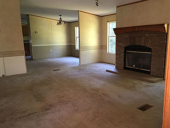 3 Bed 2 Bath Double wide in great condition. Large front deck with woods behind the home. Open floor plan with fireplace. It does need some work still the spare bathroom needs a shower installed. Had a new tin roof installed 2019 and a brand new HVAC unit in 2019. also has a 8 x 16 shed that is good for a workshop.
