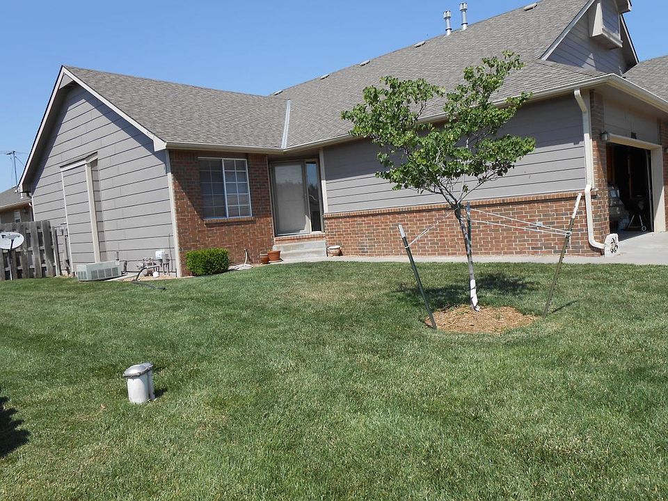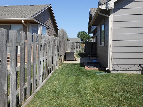 Beautiful open floor plan twin home for rent in Maize School District. Vaulted ceilings, tiled kitchen and bathrooms. 3 Bedrooms and 2 Bathrooms with total 2095 sq feet. Double car garage with plenty of storage space in basement. 2 year old carpet. Washer/dryer hook up. Small fenced yard. Sprinkler system and well for lawn. Lawn care provided by Landlord. Must See.