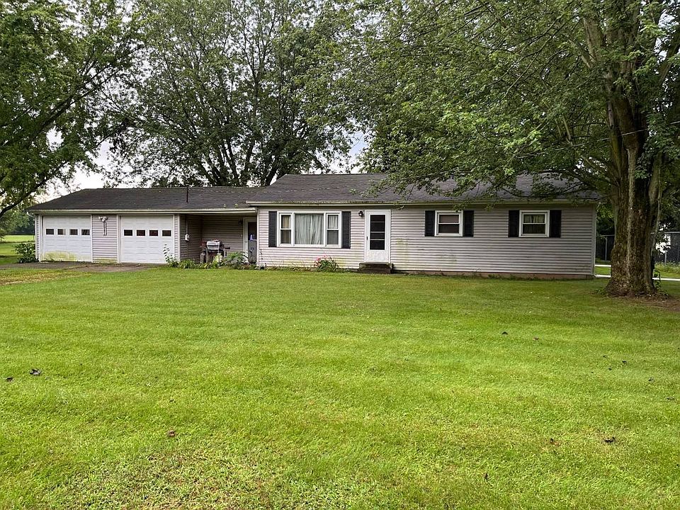 AUCTION- 21.86 acres in 3 tracts Tract 1: One acre with a 1,368 sq. ft. house, full unfinished basement, two bedrooms, one full bath plus a master bedroom with attached full bath, kitchen/dining room with stove and refrigerator, living room, large laundry room, 2-car garage, gas FA furnace with central air, back concrete patio area. House appears to be structurally sound but updating is needed. Tract 2: Three acre swing tract directly behind tract 1. Tract 3: 17.86 acres, road frontage on 500 N approximately half wooded the other half tillable This property will sell at auction on November 2nd at 6 pm. The price is just a suggested starting bid.