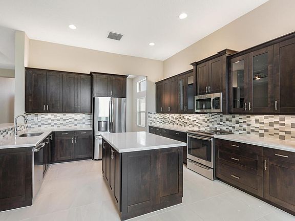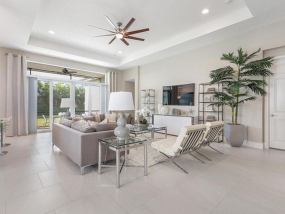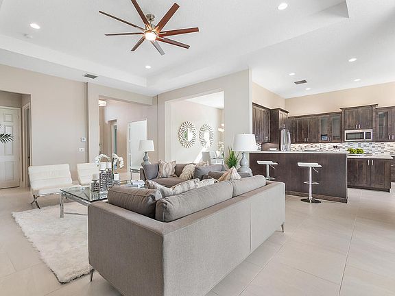 FURNISHED - Valencia Bay, Lot 102. Builder new construction quick delivery home with Impact glass windows. Price includes 60,000 in builder upgrades, free furniture and an additional $2,500 discount. Upgrades include additional recessed lights, 24x24 tile floors with brick lay design, Cosmopolitan White Ceasarstone quartz counter tops in the kitchen, with Dark Roast Fairhaven Alder cabinets and a glass tile backsplash. The master bath includes Nouget Ceasarstone quartz counter tops and Frosty White Lexington Maple cabinets. Vignette package includes custom paint, window treatments and ceiling fans. Call for a full list of upgrades. Additional closing cost incentives may apply. Incentives may change at any time. Note:Some photos are artist renderings. Virtual Tour is builder's model home