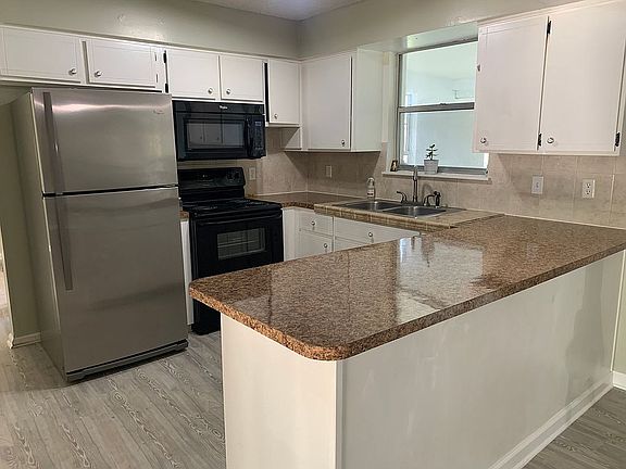 Freshly painted interior & exterior. The roof is 3 yrs old and the home has newly installed LVP flooring with an enclosed large patio. This is a concrete block home with brick front exterior. Large fenced yard with grilling area!