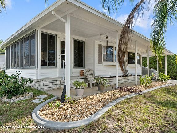 Welcome home to one of the most sought after 55+ communities. YOU OWN THE LAND! Completely updated 2/2 fully furnished just bring your bags and toothbrush. Beautiful french doors lead out to your Florida room enclosed with Acrylic windows. Bay windows in living room and master bedroom. Outstanding curb appeal with beautiful gardens in front and a double parking pad. Vinyl siding and a metal roof protects your home from the Florida weather.