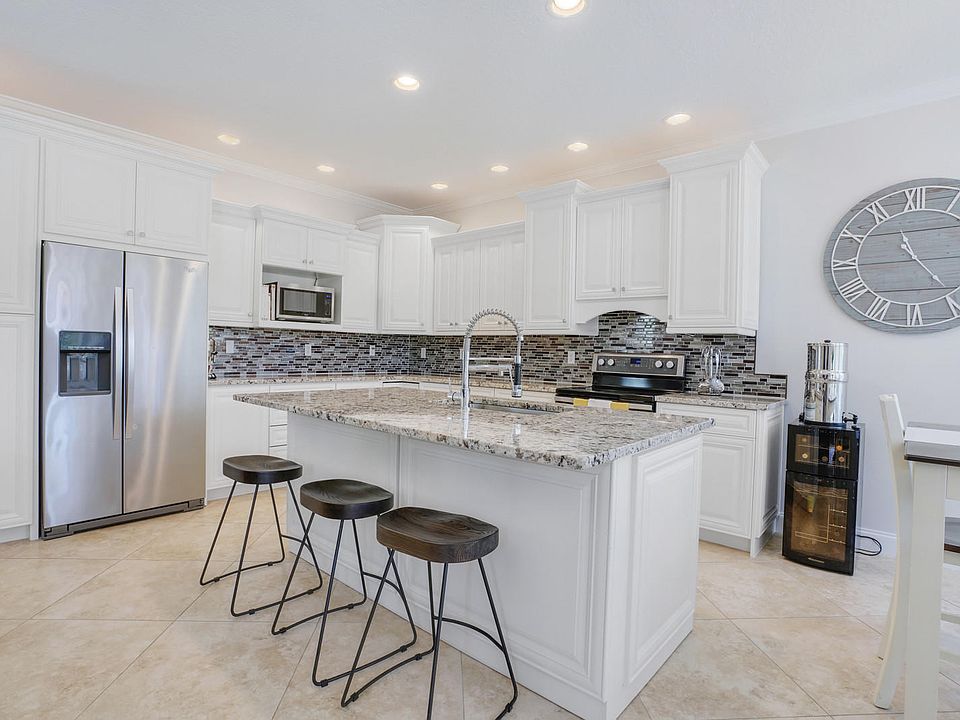 Welcome to your new home! This 5 bedroom 3 bathroom home is the true meaning of MOVE IN READY! If open and airy are what you are looking for, then you will love the freshly painted interior lined with crown molding, 24 x24 travertine style porcelain tile and custom designed kitchen with top tier granite countertops and stainless steel appliances. Guests in town? No problem, a full bedroom can be found downstairs along with a spa like bathroom they will love! Retreat to your private sleeping quarters upstairs where you will find high quality Urbano laminate flooring throughout, 3 ample sized bedrooms in addition to the elegant master suite with fully remodeled master bathroom. Outside, you will find a large fenced in yard with extended paver lined patio and separate