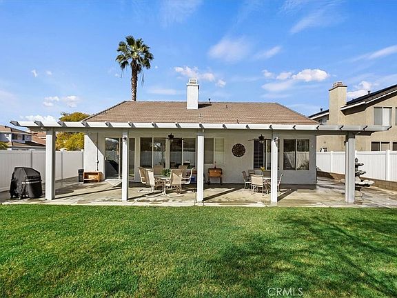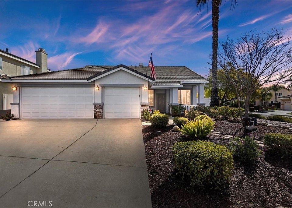 Welcome to this beautifully crafted 4-bedroom, 2-bath gem in the coveted Orangecrest neighborhood, positioned on a corner lot for added privacy and space. Inside, elegance meets comfort with wood shutters and ceramic wood flooring throughout common areas, creating a welcoming atmosphere. The bedrooms are cozy retreats with plush carpeting. A chef’s dream, the kitchen features granite countertops and opens to a backyard designed for relaxation and entertainment. Here, an Alumawood covered patio with ceiling fans and stamped concrete flooring offers the perfect venue for gatherings, surrounded by low-maintenance vinyl fencing. The home also includes a generous 3-car garage and professional landscaping front and back, enhancing its curb appeal. This single-story residence combines luxury with practical living, making it an ideal haven.