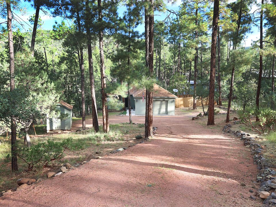 2 Bedrooms on one level and master is large. The Loft may not be in the SF (Buyer to verify & satisfy). Newer Trex decking and fenced rear/side yard for pets, kids and backyard BBQ's. Nice Shed off driveway. Rich cabin wood. Open concept floor plan. Newer furnace ('21) and water heater ('22). Plumbed propane. F/Air+wood-burning stove in the living room warms the home too. Enjoy the screened-in porch whether it's summer breezes which flow through the home beautifully when both doors are open, or sitting in a covered spot to enjoy the monsoon and winter weather. Wide 1 car garage with the half bath, work benches and extra wood. Washer/Dryer/Refrigerator/Stove are included