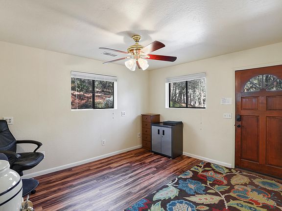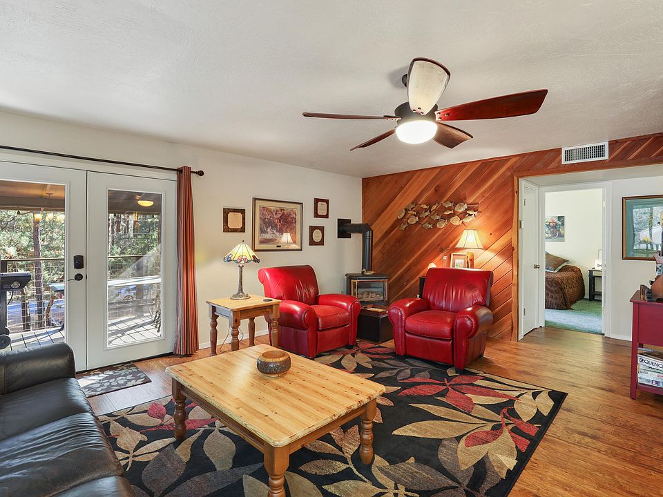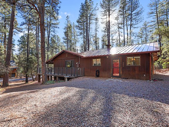 Ready to spend some quality time in the woods? This is the prefect cabin for you! This beautiful 3-bedroom 2-bath home has a wonderful cozy feel, you won't want to leave. This home also has a bonus room that could be used as an office or potential 4th bedroom. This property is situated amongst the tall Ponderosa Pines on 0.37 acres with RV parking, storage shed and wrap around trex deck that was built in 2021. Some upgrades include central heating & cooling installed in 2018, metal roof installed in 2014, and main water line replaced in 2023. Some furniture can convey at no additional cost, and some can be purchased by separate bill of sale. Call to see this one today!