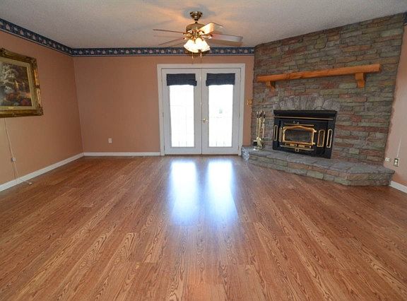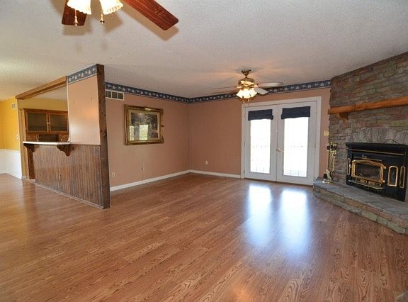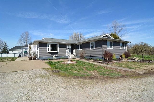 Great house on a large .84 acre lot in Wadesville! Large 1,800 square foot ranch with a master suite and 2 additional bedrooms. There's also a great den/office off the living room. Living room features a beautiful stone fireplace with woodburning insert. Master bedroom has Hickory hardwood flooring, a full bathroom & walk-in closet. Home does has Replacement windows throughout, Replaced Vinyl Siding and a large deck & patio area. There's a nice 2.5 car detached garage. Behind the home is open views of fields. Home is being Sold "As-Is." Home has already been inspected and seller has made repairs.