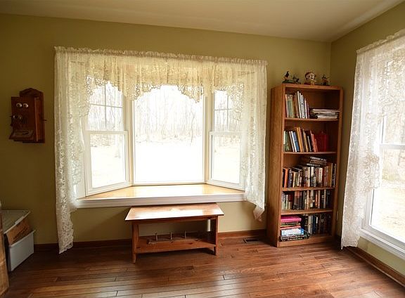 A nature lover's dream on 5 wooded acres with beautiful views throughout the spacious home. Separate dining room off front porch with hardwood floors leads into the kitchen with eat in space open to the family room with wood burning fireplace. Separate living room with hardwood floors and a second wood burning fireplace leads to enclosed 3 season room and office with bay window. Mudroom off kitchen and two separate staircases to the 2nd floor. Upstairs features 4 bedrooms including a large master bedroom with loft overlooking the backyard. Finished basement with rec room and bonus room. Multiple outbuildings including large 3 car garage with 220 electrical, detached screened porch, 24x36 barn with attached 16x16 bonus room and shed. Whole house generator with backup sump pump. Recent upgrades includes the majority of the windows, refrigerator, dishwasher and large deck overlooking the backyard. Make sure to put this private and secluded retreat on your list today!