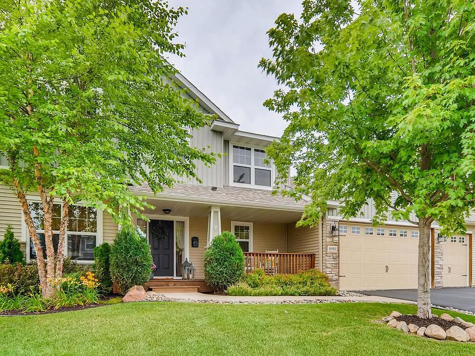 Beautiful two-story 5-bedroom home with walk-out finished lower level in sought-after neighborhood near Lakeville North High School. Open living area filled with upgraded amenities you will love. Fireplace with custom barn wood accent walls, hardwood floors throughout main level, stairs, landing and upper hall, enameled millwork, knockdown ceilings, granite counters and upgraded stainless appliances. For entertaining and a perfect view of Lakeville’s annual fireworks, this home has a large covered upper deck, a second lower sun deck, and a lower level patio. Yard is fenced and beautifully landscaped with trees galore! Don’t miss out on this beautiful Lakeville charmer!