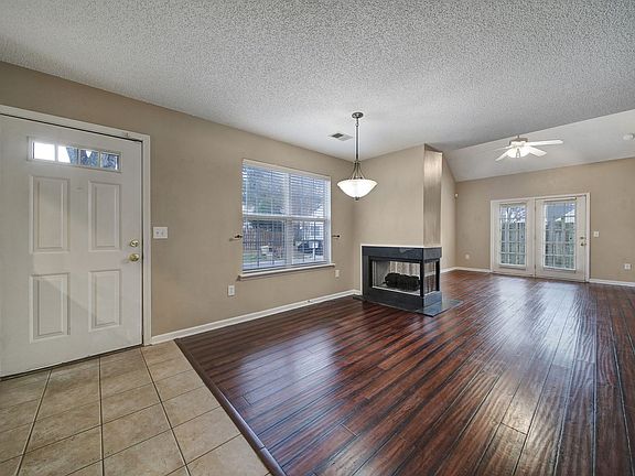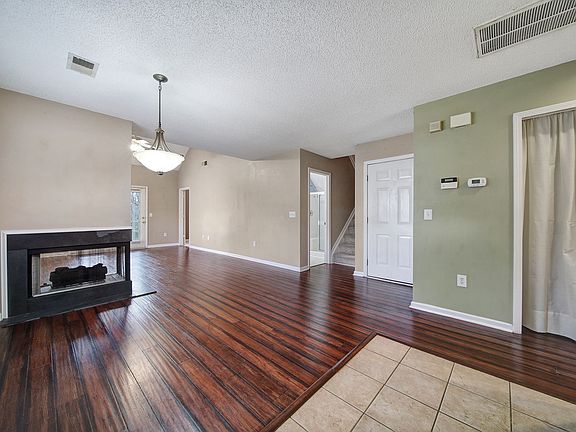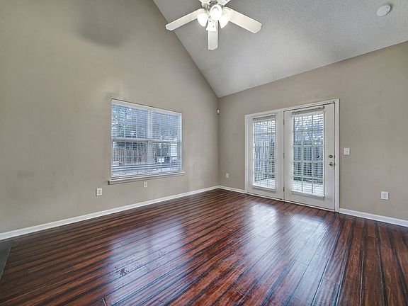 This end unit townhome features an eat-in kitchen with white cabinetry, appliances, a beautiful arched window, and a vaulted ceiling. Gorgeous bamboo flooring in living area. Brand new LVP flooring in the primary bedroom and upstairs. The large primary bedroom is located on the first floor and also features a spacious closet. The backyard has an enclosed privacy fence & across from the front yard is a wooded common area. Conveniently located near shopping, restaurants, fitness center, and more. This community also has a community pool. Please no pets.