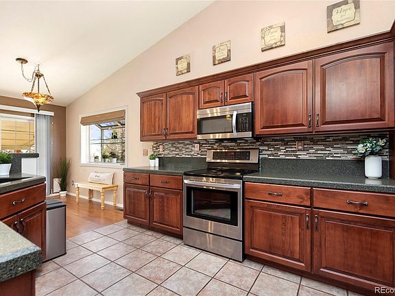 This beautiful ranch home is situated on a sizable 12,786 sqft lot. It features an open floor plan with beautiful wood floors, tons of natural light and an amazing neighborhood that is easy walking distance to great schools and trails. On the main level of the home you will find a large living room, kitchen with granite and stainless steel appliances, breakfast bar, formal dining room and a walk out dining room with a gas fireplace. Main level also features a master suite with an attached bathroom with a jetted tub, 2 additional bedrooms, laundry (washer/dryer included), and another full bath. In the basement, you will find an expansive great room with a wet bar. You will also find another large bedroom and bath in the basement. There is a large storage space in the along with a storage shed in the back yard. Don't miss the large covered patio in the massive beautiful back yard that backs to open space, walking trails and Sand Creek.