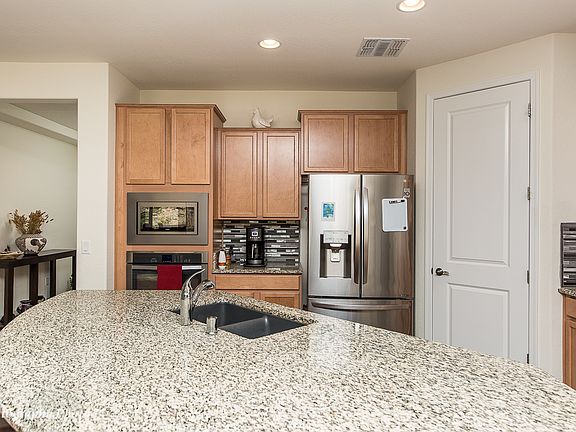 Better than new. Ready to move into a Sun City Hideaway but not ready to wait for a new build? This less than 2 year old beauty is your home! This open floor plan has a flow-through kitchen and generous-sized dining area. Perfect for entertaining. The first thing you will notice when you enter the home are the exquisite, easy care floors. The floor color will coordinate with a wide palette of colors. This home has many costly upgrades. Granite counters have a designer bull-nose edge. The complementary backsplash highlights the included stainless steel appliances! The living room space is open. Your master bedroom is over-sized & has a large bay window. The ensuite has dual sinks, large shower with custom-tiled and has a grab bar. The walk-in closet is spacious. There is a second bedroom at the front of the house, with a nearby guest bath, providing ample space for visitors. Laundry room is extended for use as an office, craft room. 3 ceiling fans, window coverings, & water softener are already installed. The garage has a two-foot extension. Enjoy your beautifully landscaped backyard, with extended pavers. Must see the yard to appreciate it! Start living the Sun City lifestyle.