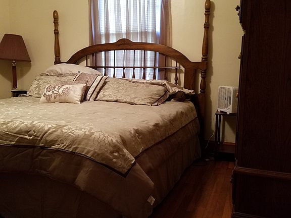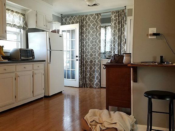 Spacious living area, hardwood and laminate flooring throughout the house, new kitchen counter tops and cabinets have been reworked. Vinyl siding, central heating and air with 2 wall mounted heaters. Large fenced in back yard with access. All this in a great neighborhood and convenient to schools and daycare.