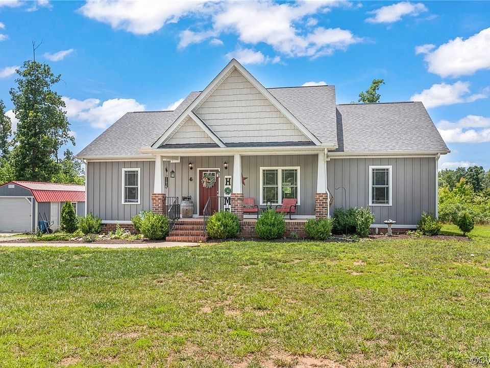 Welcome to this exquisite Craftsman-style ranch home nestled in the serene landscapes of Western Powhatan County. Tucked away on 10 acres of private land, the front porch adorned with a charming swing, invites you to bask in the nature surrounding you. Stepping inside, the family room boasts hardwood floors and crown molding, seamlessly transitioning into the dining room and well-appointed kitchen. The kitchen showcases granite countertops, a raised bar for casual dining, abundant cabinet space, and a pantry area. The split bedroom floorplan dedicates an entire wing of the home to a spacious primary suite, complemented by an ensuite bathroom and an expansive walk-in closet. Opposite the primary suite, you will find two generously sized bedrooms. The outdoor living space is enhanced with the presence of an above-ground saltwater pool, providing an oasis of relaxation and enjoyment. With its convenient location just a short 15-minute drive from downtown Powhatan, you have the best of both worlds—peaceful countryside living combined with easy access to the amenities and attractions of the town.