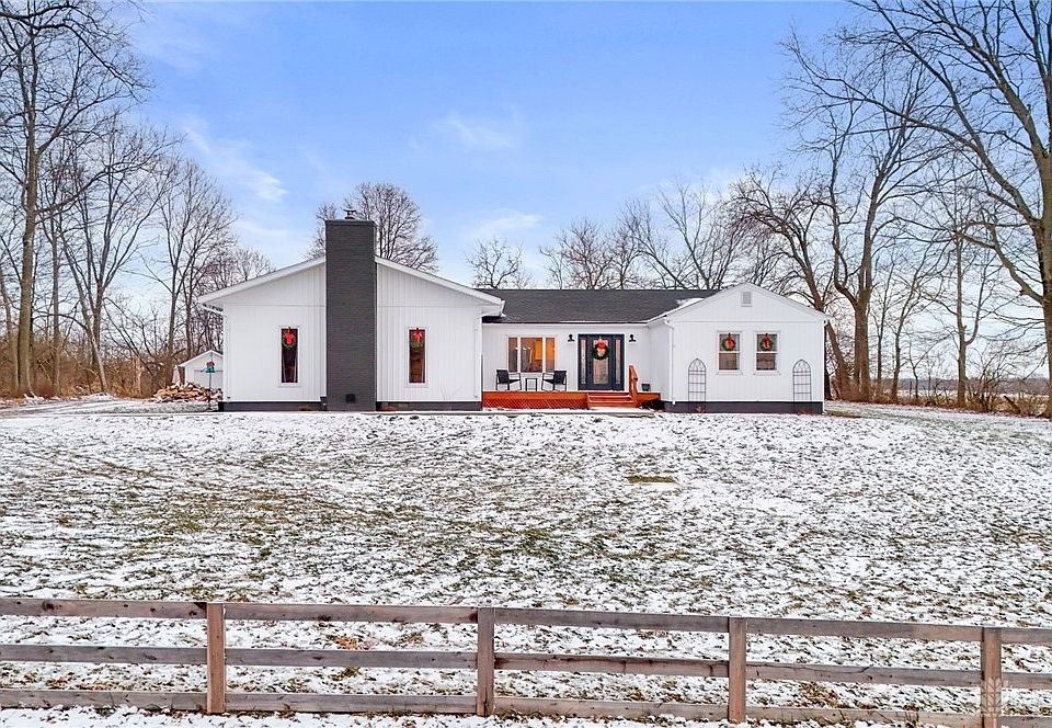 Welcome to your dream home, nestled on a stunning one-acre private lot that captures the essence of country living at its finest. This property offers ultimate privacy with no rear neighbors and a sprawling farm as your backyard view. Step inside to discover an open-concept home that has been completely remodeled to perfection. The beautiful white kitchen is a chef's dream, featuring a large quartz island perfect for gathering and entertaining. Cozy up in the family room by the wood-burning fireplace, which has been recently inspected and cleaned for your peace of mind. This meticulously updated home boasts durable LVP flooring throughout. Enjoy the new deck, perfect for hosting outdoor family gatherings or simply enjoying a quiet evening. Your culinary needs are covered with a new range, microwave, and dishwasher installed in 2023. The upgrades continue with roof/gutters (2023), windows, a wood-burning stove, dining room, and family room lighting all updated in 2024. The property also features practical amenities like a shed, a charming chicken coop, complete with the chickens, and a play area. Rest easy knowing the well was inspected in 2024 and the sump pump and water heater were replaced in 2025. Located just a stone's throw from several state parks, including John Bryant, and close to community favorites like Yellow Springs and Youngs Dairy, this home offers unparalleled access to both nature and family-friendly attractions. Schedule your showing soon! Watch the video!