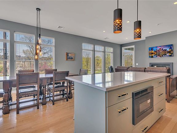 One-level living in this sophisticated home positioned on the top floor(with an elevator) of McIntosh Square Condominiums. The architecturally alluring corner unit boasts an open floorplan with the focal point being the wall of windows overlooking McIntosh Park. Pedestrian lifestyle friendly. Beautiful maple flooring, spacious great room with gas fireplace & private balcony. Kitchen features custom cabinetry, deluxe stainless appliances, dual fuel range & pot filler. Cambria quartz adorns the counters & island with seating, storage and a microwave drawer. Spacious dining area. Primary with luxury bath ensuite has heated floor, dual bowl vanity, mirror with dimmed lighting and defogging capabilities & spacious walk-in shower. A nook in the 2nd bedroom could be home office or walk in closet. Second full bath features hand painted tile & jetted tub. Ample storage, washer & dryer in unit. Two designated covered parking spaces, manicured grounds, and shared outdoor patio.