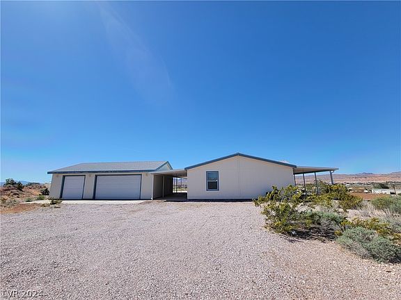 Quiet location on the top of a hill at the base of the mesa with views for miles in every direction! 4 bedroom, 3 full bath 2280 SF home with a large 5'x6' walk in pantry. Full front and back patio covers, concrete on patios and breezeway/carport to a 36'x26' detached 3 car garage. Enjoy the view from the hot tub and firepit in the backyard. Room for horses! Borders BLM land with endless ATV or horse riding opportunities with trails leading to the Logandale Trails system and access to the mesa.