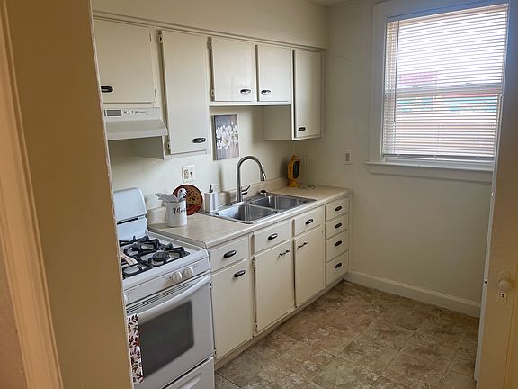 Kitchen includes large double bowl stainless steel sink with pull out spray faucet and brand new garbage disposer. Includes convection gas range and refrigerator (included free of charge). Pantry is smartly located off back stairwell with wire rack shelving to provide extra storage besides that available in the kitchen.