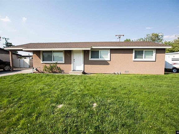 This property has RV Parking with power as well as carport and 2 storage sheds. Turn key, updated home! New beautiful interior paint throughout. The roof, stucco, windows, flooring, water heater, furnace, central AC, stainless steel appliances, doors, counter tops and attic insullation added in 2011. Guest bath has new vanity rcently. Master bedroom has double closets. 2 inch faux wood blinds throughout. Living room has recessed can lighting. Close to schools, rec center and park. Sprinklers front and back.