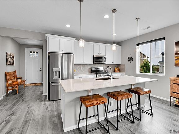 Welcome home to this beautiful ranch-style home - loaded with builder upgrades! Located in Colliers Hill, one Erie's most desirable neighborhoods, this home offers the perfect blend of quality, comfort, low-maintenance living, and neighborhood amenities. As you walk up to the home, you will be welcomed by a corner lot with beautiful landscaping and enter through a covered front porch. As you step inside, take note of the high ceilings, beautiful flooring, and expansive windows that fill the open-concept living spaces with natural light. The open floorplan creates an easy flow between the kitchen, living, dining, and outdoor areas, making it perfect for entertaining or relaxing at home. Don't miss the front office space as you walk through, which is perfect for those which work from home, or convert to an additional bedroom.