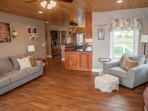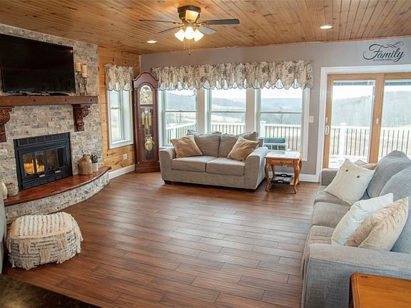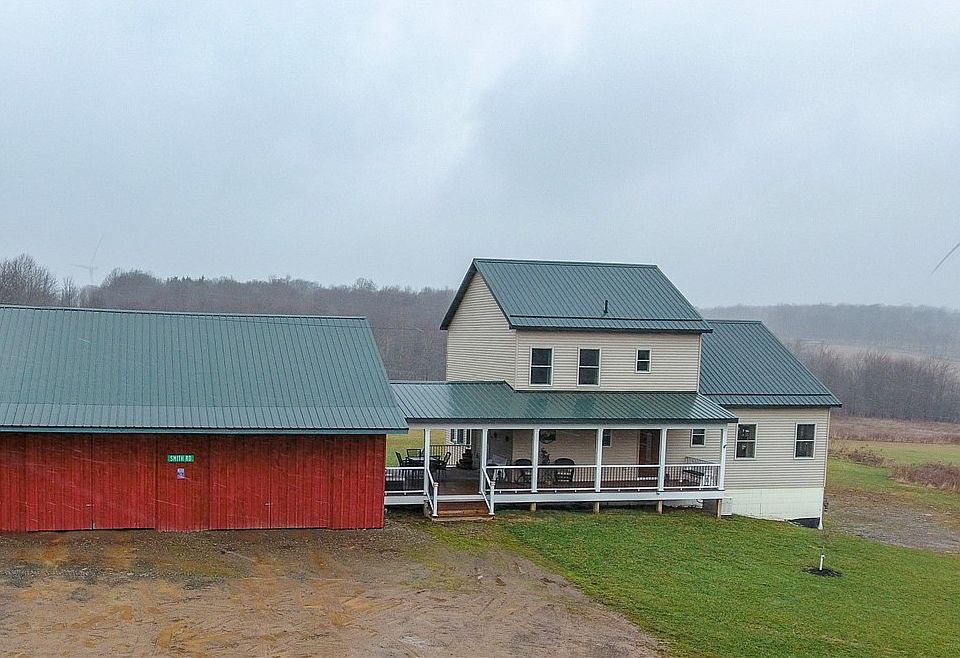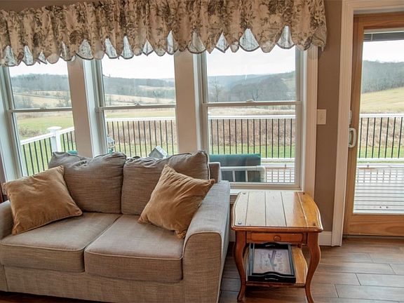 Immaculate 4 bedroom, 3.5 bath home built in 2019 on 35 acres. Stunning open concept first floor includes modern kitchen with included appliances, granite counters and walk in pantry. Spacious living room with beautiful stone, natural gas fireplace with large windows and side deck to enjoy panoramic views. First floor master bedroom with full bath. Upstairs are two additional bedrooms, another full bath, and cozy family room. Approximately 1050 sq ft of additional living space in finished walk out basement with a 4th bedroom, full bathroom, living room and large custom bar! Lots of storage/workshop space in the 30 x 40 attached garage. Home sits on 8 inch concrete poured walls with 2 x 8 construction. All walls insulated with R-30 and pine ceilings have R-60. 200 amp service to the house and additional 200 amps for garage. On demand Viessmann hot water and radiant heat with Generac back up in place. 35 acres of excellent hunting with a natural spring on property ideal for adding a pond. Apple orchard and bonus shed for extra storage!