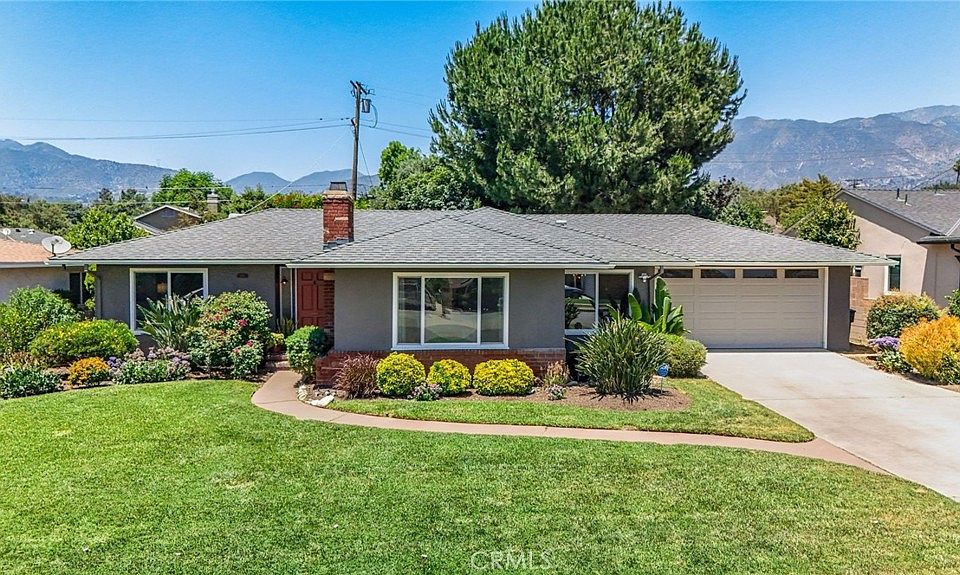 This lovely 1951 3/2 home has undergone a total transformation from hidden systems to interior and exterior refresh! You will love the single level floor plan with large living and bedroom spaces. Upon entry you will immediately sense the modern, clean lines with new wood floors, new baseboards, door and window trim, large windows, contemporary lighting, stylish hardware, along with a few selective, thoughtfully retained charming accents for interest. The living room, with it’s picture window, builtin shelving, fireplace and open to a dining area, is spacious with a seamless flow. The kitchen and bathrooms have been remodeled from the ground up with new flooring, custom counters and cabinets, appliances, lighting and fixtures. The kitchen has been reconfigured with an extended counter/island, equipped with two beverage refrigerators, and range hood. The hall bathroom has a sliding barn door, linen closet, separate large shower, stand alone bath, and double sink. The primary bathroom/ensuite has a sitting area with corner windows overlooking the lush backyard, custom oak counters and recessed medicine cabinets with granite top, sleek fixtures and rainfall shower all equal to a high end hotel getaway. All the bedrooms have ample closets and open space for large beds and plenty of furniture without feeling cramped. The interior bedroom has been equipped with a custom door leading to the family room allowing for more light and options. The family room has large windows and sliding door to the patios and lovely, private backyard. This room has plenty of space to create a recreation area, dining options or large entertainment space. For comfort and functionality, the washer and dryer have been moved indoors from the garage, new HVAC system, whole house new electrical system, new copper plumbing, new paint and more. Outside, the expansive 9012 SF lot provides plenty of space for outdoor entertaining, gardening and relaxation. The 2 car garage has a second garage door that opens to the back patio creating some exciting options - band parties, gym, yoga studio. The backyard boasts two seating areas, fruit trees, a grassy area and a tall pine tree providing shade. Tucked in the beautiful foothills of the San Gabriel mountains and located at the juncture of Pasadena, La Canada Flintridge and Altadena, this area is close to so many desirable offerings such as JPL, the Rosebowl, Old Town Pasadena, freeways and it has a quiet, rural feel and hiking trails nearby.