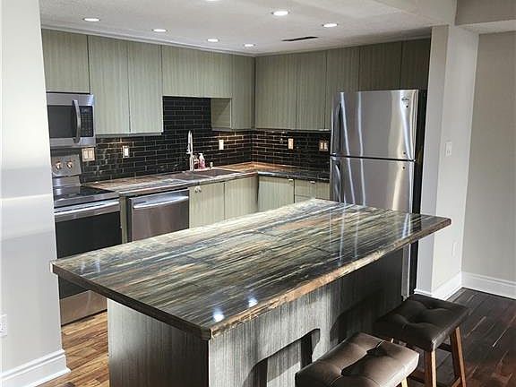 Renovated kitchenLarge islandSleek appliancesAmple closet spacePrivate driveway parking