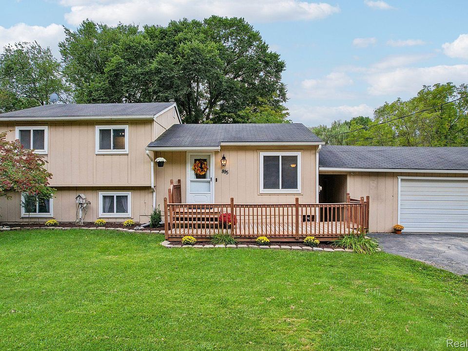 What a great opportunity to be within walking distance (1/2-hour stroll) of the happening, vibrant Village of Lake Orion. This community is growing and so active, filled with an array of multi-cultural restaurants and plenty of shopping. The parks and entertainment and the school district are amazing too, with tons of programs & incredible sports! This home sits on a private unnamed lake so the views and wildlife are just beautiful, each season brings its own flavor. Sit out back on your deck w/attached raised bed gardens, enjoy a private hot tub or roast marshmallows in your firepit back by the water. Bonus…..this Quad level home actually has a finished walkout lower level (basement). So, kids have a great get-away or have the perfect game room or even a workout area, let your needs or imagination decide. The main floor entry takes you directly into a lovely living room (or dining room) with a large picture window that opens into the kitchen. The kitchen has white cabinetry & a nice breakfast area, all appliances are included. There are newer: windows & door walls, hot water tank 2018, Detroit City water installed within the last 2 years & interruptible electrical service. Upstairs you have 3 bedrooms and an updated full bathroom. The lower level has a family room with knotty pine walls & built-in storage along with the 4th bedroom & powder room. The second lower level has a utility room/laundry room and a bonus room/office, your choice! Then of course the finished walkout basement. The detached garage is huge with a built-in workshop. Fencing is allowed, 4 feet or less in height. There’s also a nice covered front porch/deck area. Come see this great place to call home!