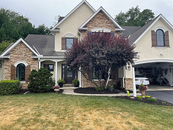 French Country style home located in Heritage Hills in Dallastown schools. Loaded with upgrades, character and charm. 4 bedrooms, 2.5 baths, first floor updated master with walk in closet, tub shower and double sinks. Great room with 20' ceilings, gas fireplace and huge new Anderson by Renewal black framed-windows that update the entire home. Large eat in kitchen, first floor laundry, private fenced yard, finished family room in basement plus 1050 unfinished square feet with endless possibilities. 2 car garage covered deck with stone pillars and extended patio. This home has been completed upgraded.
